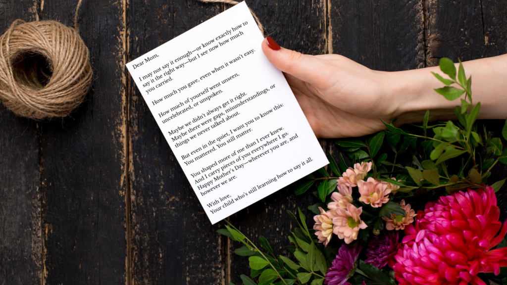 And when you can’t? You still get to write your own message. One filled with honesty, boundaries, forgiveness, or grace. Whatever feels real. Because this day doesn’t belong to perfection. It belongs to honor.